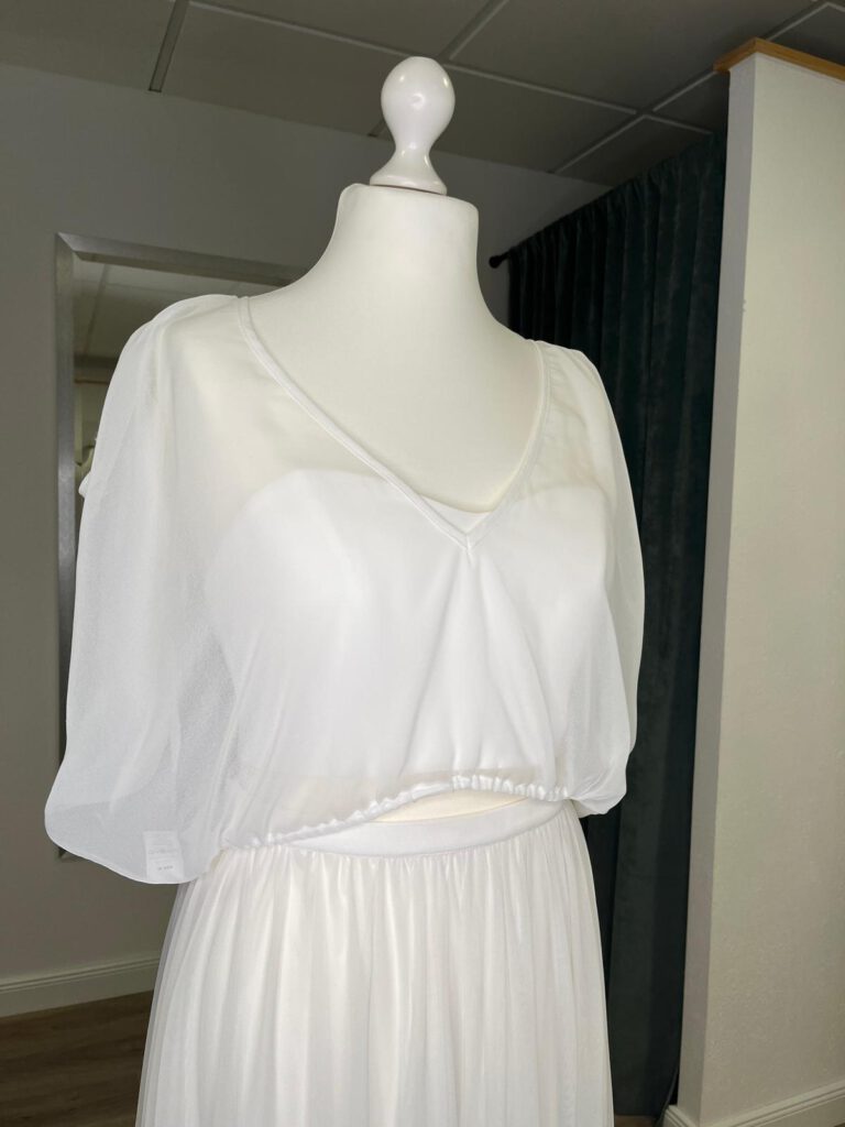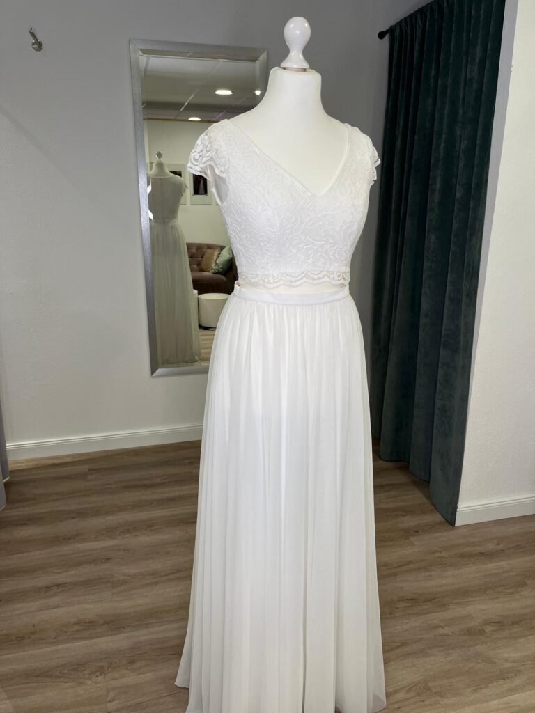 Der moderne Zweiteiler bietet dir durch das Mix & Match Prinzip große Freiheit: Kombiniere deinen Lieblingsrock oder eine Hose mit einem Top deiner Wahl. Dieses Konzept revolutioniert die Brautmode und ermöglicht eine nachhaltige Nutzung der Einzelteile auch nach der Hochzeit. Finde deinen eigenen Stil und kreiere aus unzähligen Kombinationsmöglichkeiten dein Brautoutfit. Je nach Hersteller sind Outfits schon ab ca. 400,-€ zu haben.